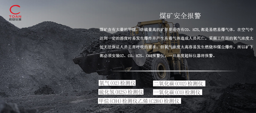 煤礦安全監測:煤礦含有大量的甲烷,含硫量高的礦井里還含有CO、H2S,都是易燃易爆氣體,在空氣中達到一定的濃度時易發生爆炸并產生有毒氣體造成人員死亡。采掘工作面的氧氣濃度太低無法保證工作人員的正常呼吸要求,所以礦下都必須安裝O2、CO、H2S、CH4報警器。